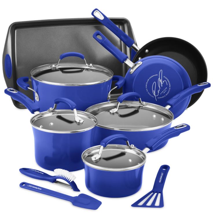 Get your Rachael Ray 14-Piece Classic Brights Hard Enamel Nonstick Cookware Set HERE