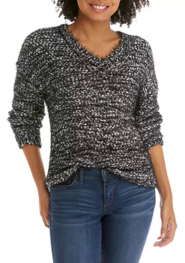 Derek Heart Junior’s V-Neck Popcorn Sweater HERE