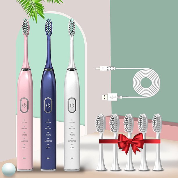 This toothbrush prevents water droplets from immersing inside the fuselage and has five modes with one button control. You only have to charge it once for 180 days of use, and there is a 2 minute smart timing. The top of the bristles are rounded and smooth to prevent gum abrasion.