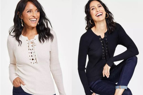 Get your Women’s Lace-Up Ribbed Sweater HERE
