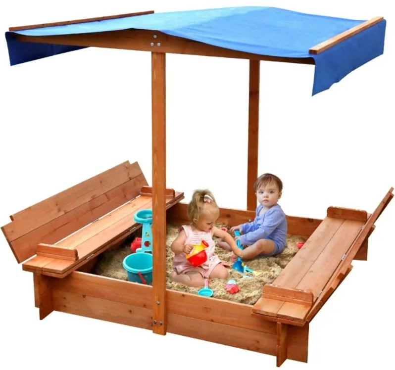 Get your Wooden Sandbox with Cover & Folding Benches HERE