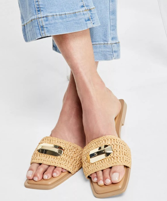 Square open toes and woven straps pair with metallic hardware for a go-to look in the Paramita sandals from I.N.C. International Concepts.