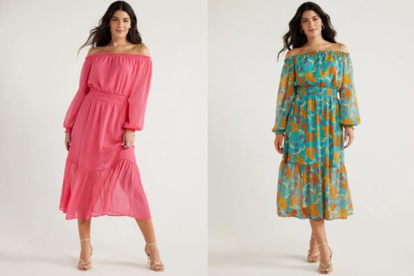 This gorgeous dress is perfect to wear now or in the Fall. We found this Women’s Off the Shoulder Dress with Blouson Sleeves for just $15.60 (was $26)!